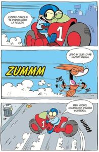 Y para terminar, quiero recomendarles un título destinado a los lectores más jóvenes... pues el Salón de Valencia también tiene un hueco para ellos considerando con razón que son el futuro de la afición y por tanto de la industria del cómic. Me refiero a la primera entrega de Chorigato, una serie guionizada por Pau Clua y dibujada por Marko Torres que promete grandes dosis de entretenimiento y diversión para los más pequeños: tal y como sugiere su título, su protagonista -fruto de un accidente ocurrido en un laboratorio- es mitad chorizo (en la acepción de ladrón de baja estofa), mitad gato... y todo (super)héroe. También disponible en catalán, este volumen narra el origen y la primera aventura del personaje; y de él cabe destacar tanto los diálogos repletos de chistes y juegos lingüísticos de doble sentido, amén de homenajes puntuales a personajes como Batman o Spiderman, así como un dibujo capaz de plasmar una asombrosa energía cinética que lleva a leer el volumen en un suspiro. En resumidas cuentas: una verdadera sorpresa, que disfruté sin necesidad de hijo menor interpuesto (aunque este también lo gozó, me consta)... y con la que cierro mi ronda de propuestas de hoy. La semana que viene, más cómics de autores invitados al Salón. Permanezcan atentos.