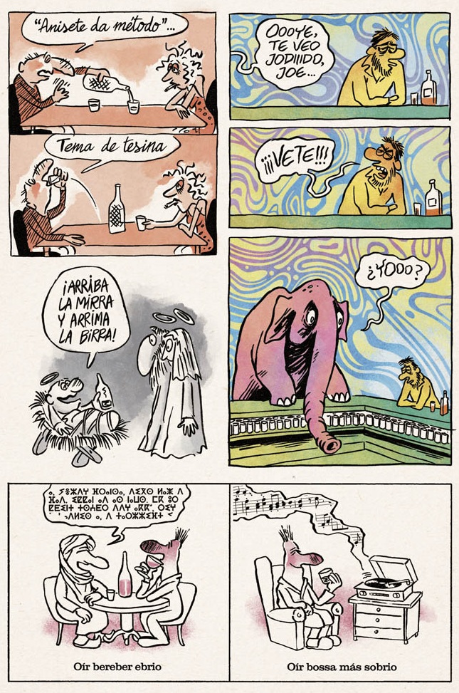Empezaré por el que me parece uno de los mejores cómics de entre todo lo publicado en 2025 (y que no entró en el consabido top anual solo porque no lo pude leer a tiempo), y sin duda el más original e inesperado de toda la cosecha: me refiero a Palindrotiras, la antología del cómic palindrómico -tal y como manifiesta su subtítulo- que ha armado José Pablo García, al que muchos recordarán por Las aventuras de Joselito o sus adaptaciones de novelas de Galdós y ensayos de Paul Preston. En esta ocasión, García recopila una serie de viñetas que nacieron como proyecto digital y que la editorial Autsaider Cómics acoge ahora con el mimo al que nos tiene acostumbrados. Como imaginarán, concebir una colección de historietas breves y viñetas de humor gráfico cuyos textos se leen igual de izquierda a derecha que viceversa y que estas tengan algún sentido conceptual es un reto del que muy pocos podrían salir airosos. Pues contra todo pronóstico, el autor lo consigue y de paso homenajea con asombrosa pericia a los más variopintos estilos, escuelas y artistas de la ilustración universal y el cómic de todos los tiempos: al margen de la magnífica recreación de Krazy Kat que ilustra la cubierta, viajaremos del antiguo Imperio Griego con las imágenes que adornaban su cerámica hasta el apocalipsis nuclear y la extinción de la humanidad vistos por El Roto, pasando por los grabados medievales, los antepasados del noveno arte elaborados por Rodolphe Töpffer, el desternillante 13 Rue del Percebe del añorado Francisco Ibáñez, las escandalosas “Biblias de Tijuana”, los tebeos de la factoría Bruguera, el humor gráfico del New Yorker -que también (y tan bien) homenajease Seth-, las viñetas satíricas de La Codorniz y Hermano Lobo, las tiras de Quino, Watterson o Liniers, o el trazo de autores contemporáneos como Alison Bechdel, Mauro Entrialgo o Ralf König... Esto por citar solo algunos pocos: la lista parece interminable y, por no faltar, no faltan ni series de televisión como V o Twin Peaks (lo juro). Sumérjanse en sus páginas y alucinen una y otra vez con la fascinante audacia verbal y la pasmosa versatilidad gráfica de su autor.