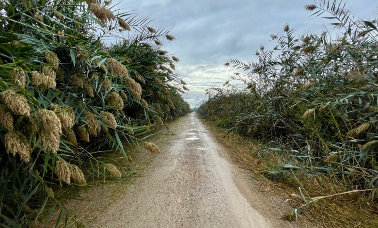 Vecinos de la pedanía de Las Virtudes han denunciado a EPdV el estado de la Acequia del Rey, cuya falta de limpieza y mantenimiento ha llevado a que, en algunos tramos, las cañas y el carrizo poco menos que conformen un túnel en el camino paralelo a la conducción.