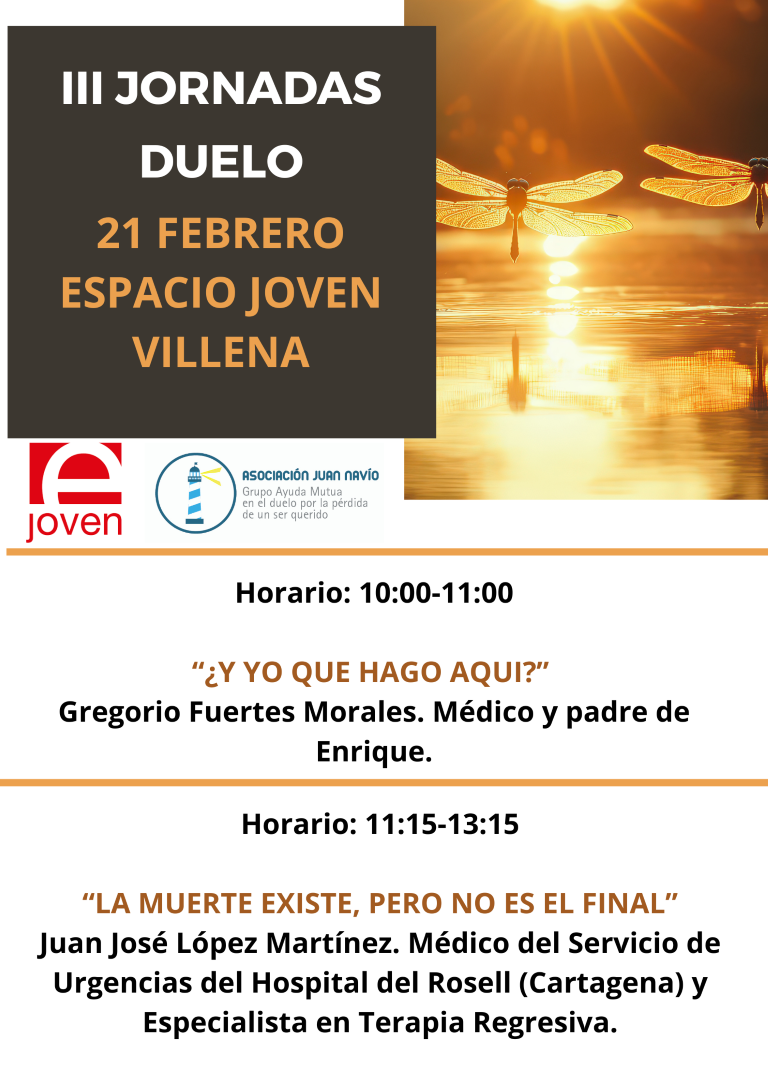 Villena acogerá el próximo sábado 21 de febrero las III Jornadas de Duelo organizadas por la Asociación Juan Navío, una cita ya consolidada en el calendario local que busca ofrecer acompañamiento, reflexión y herramientas para afrontar la pérdida y profundizar en el sentido de la vida.