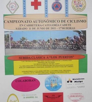 Este sábado, 11 de junio, la ciudad de Villena será escenario del Campeonato Autonómico de Ciclismo en carretera (Categoría Cadete), cuya organización correrá a cargo del Club Ciclista Alto Vinalopó. Colabora la Fundación Deportiva Municipal.