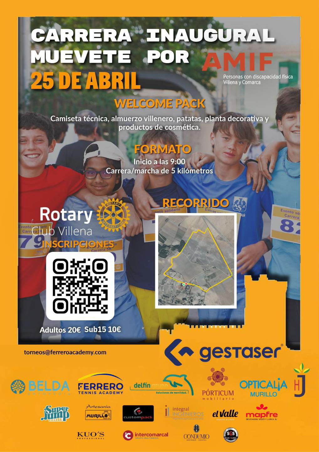 Villena se prepara para acoger el próximo 25 de abril la primera edición de la carrera solidaria “Muévete por AMIF”, una iniciativa promovida por Rotary Club Villena en colaboración con la asociación AMIF (Personas con Discapacidad Física de Villena y Comarca). El evento busca fomentar la participación ciudadana y recaudar fondos para mejorar la calidad de vida de este colectivo.