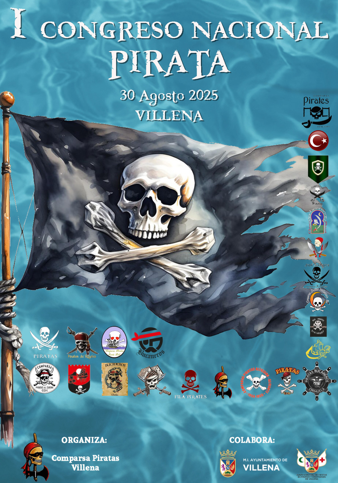 Villena acogerá en víspera de Fiestas, concretamente el sábado 30 de agosto, el I Congreso Nacional Pirata, un evento organizado por la Comparsa de Piratas de nuestra ciudad, a la estela del I Congreso Internacional celebrado hace unos años.