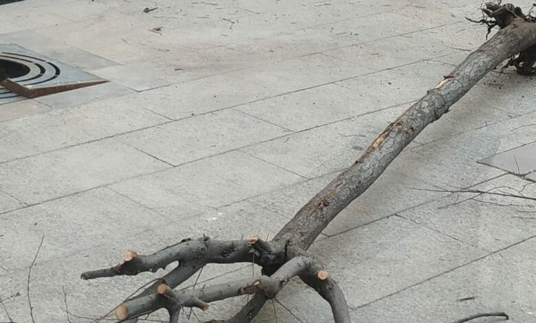 Hoy de buena mañana se llevaban el árbol que estaba junto al Palacio Consistorial “para su entierro”, ya que llevaba varios meses seco.