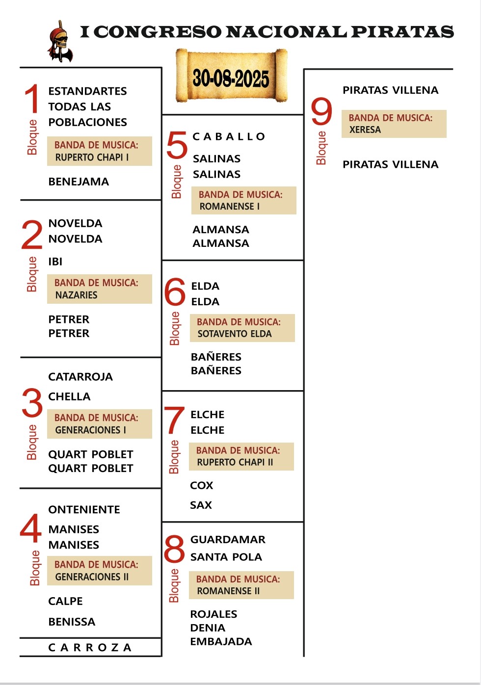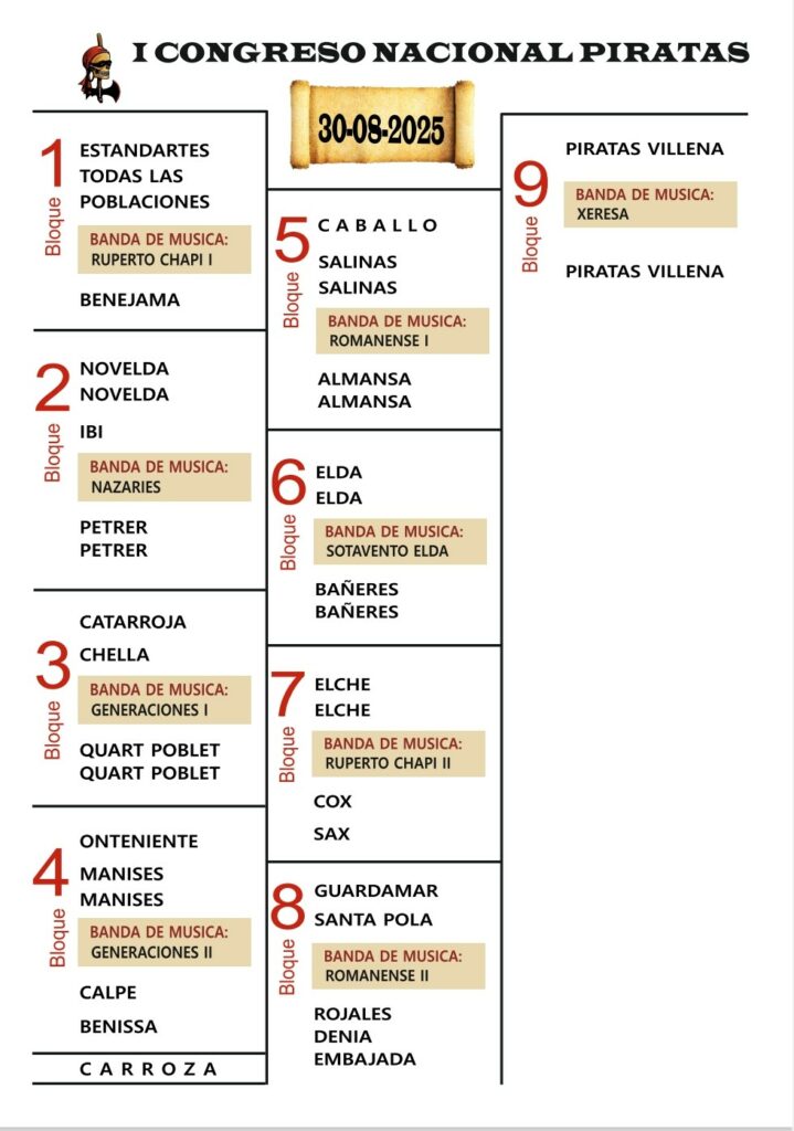 El I Congreso Nacional Pirata no es solo un encuentro de comparsas: es una fiesta abierta a la ciudad que combina historia, cultura popular, música y convivencia. Villena vivirá una jornada irrepetible, donde la tradición se mezcla con la alegría y la pasión festera.