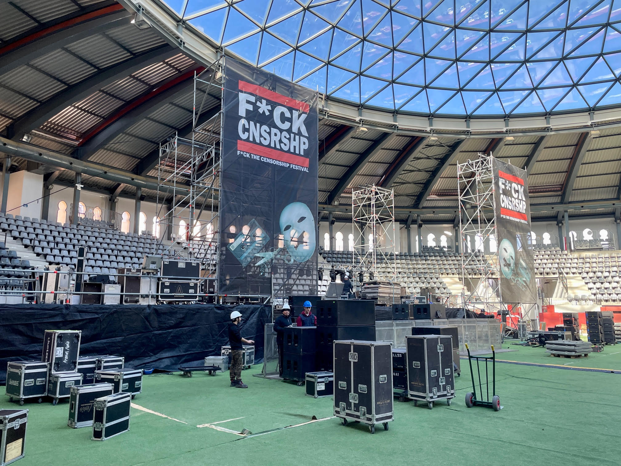 A estas horas, los trabajos se suceden en la plaza de toros de Villena para poner todo a punto para dar el pistoletazo de salida a la temporada de festivales con el clásico Fck Cnsrshp, que tendrá lugar este sábado 31 de enero y que espera una afluencia de entre 3.000 y 3.500 personas, según informaba el promotor, Marcos Rubio.