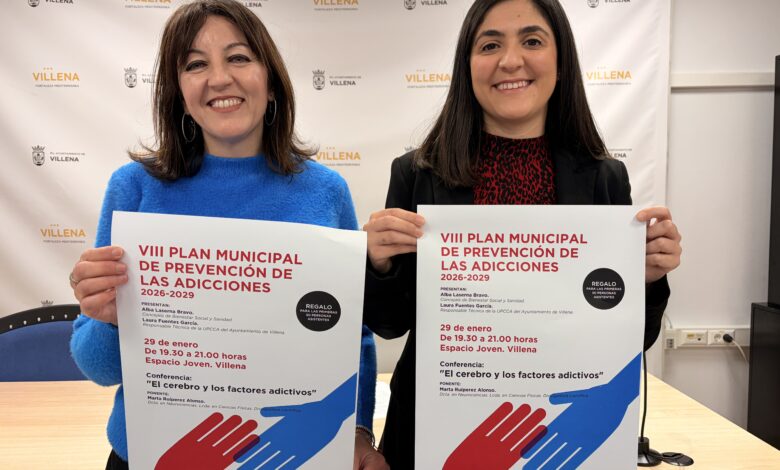 El Ayuntamiento de Villena presentará este jueves 29, a las 19:30 horas, en el Espacio Joven su nuevo Plan Municipal de Prevención de Adicciones 2026-2029, una herramienta estratégica que refuerza el compromiso municipal con la salud y la calidad de vida de la ciudadanía, especialmente de la infancia y la juventud.