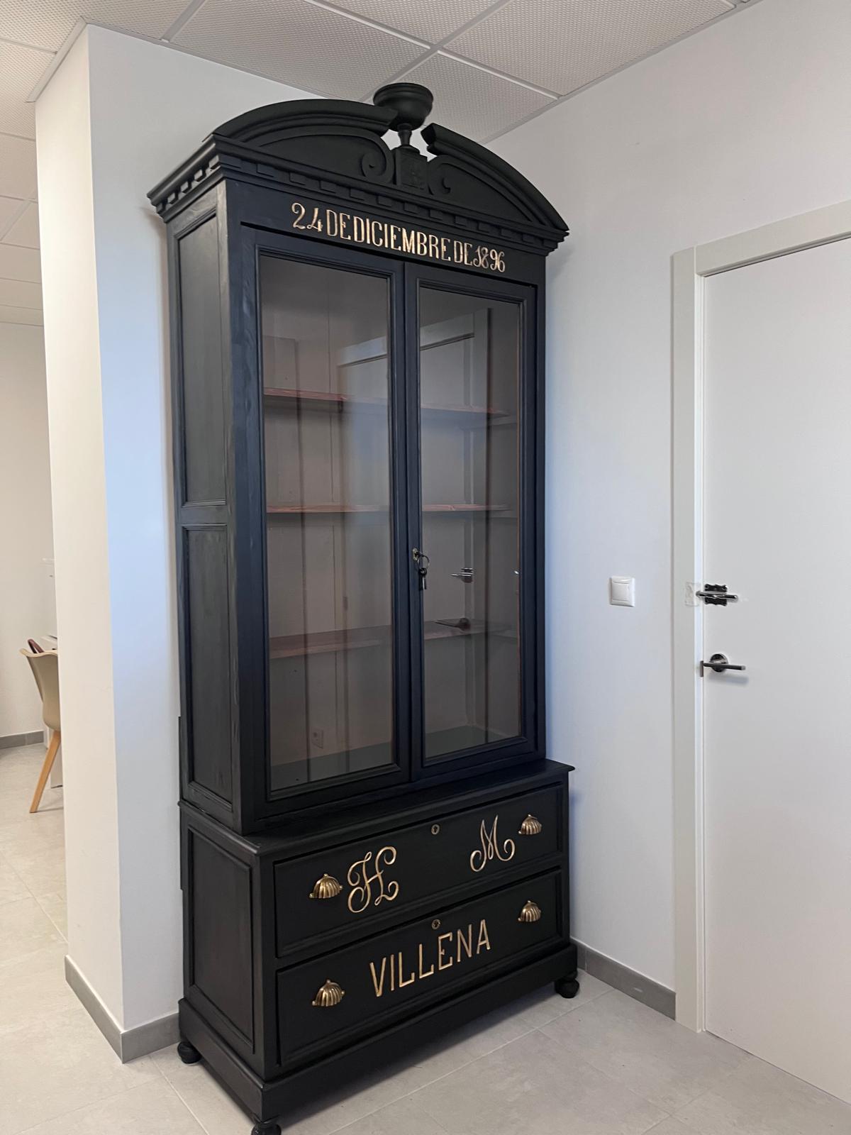 La edil de Cultura ha explicado que “la vitrina de 1896, que durante muchos años ha sido testigo mudo de innumerables momentos en este consultorio médico, ha recuperado el aspecto que tenía cuando fue construida. Después de unas indagaciones de los técnicos del MUVI, creemos que la vitrina perteneció al Hospital Municipal de Villena ─de ahí las siglas que figuran en la parte inferior─ situado en el antiguo hospital de la Concepción hasta 1966, fecha en la que fue demolido y en cuyo solar se construyó el actual Centro de Salud 1”.